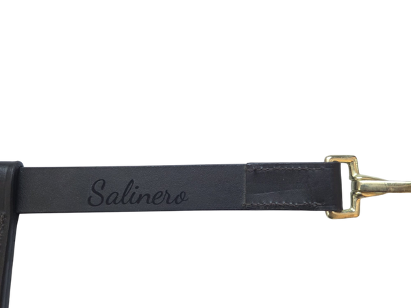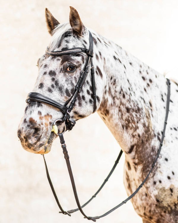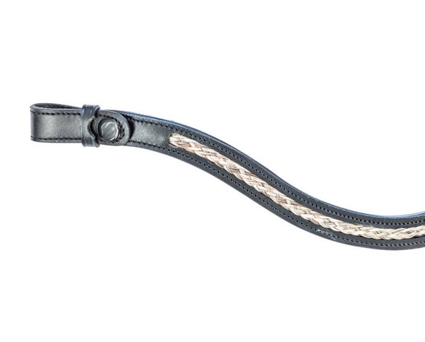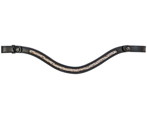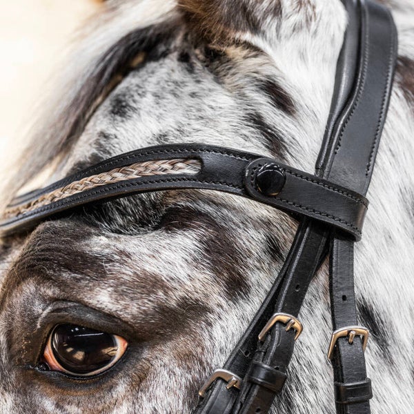 Prachtige echt leren frontriem met gevlochten paardenhaar ingelegd.